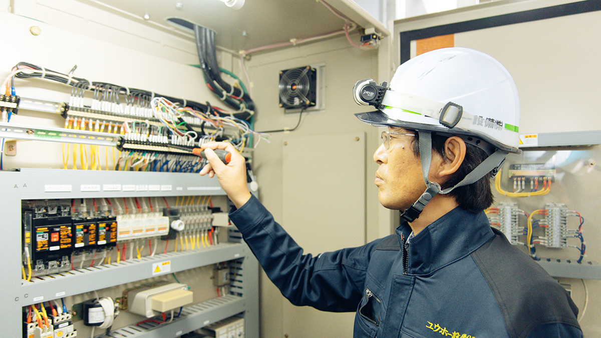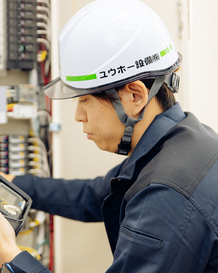 技術部に所属し、電気工事を行っています。入社して10年ほど経ちますが、未だ各現場で新たな経験をすることが多くあり、飽きのない仕事です。