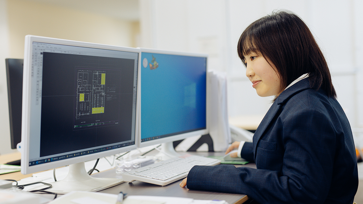 技術員アシスタントとして、主に技術職が現場に入る際に元請会社に提出が必要な書類や見積書等の作成を行っています。建設業という業種で働くのは初めてでしたが、わからない点は先輩方に教えて頂きながら、少しずつ慣れてきました。